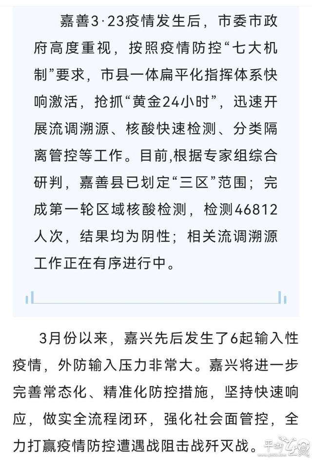 摘要:關(guān)于最新嘉興疫情,當(dāng)前形勢嚴(yán)峻。嘉興市政府采取了一系列措施,包括加強(qiáng)監(jiān)測、隔離和治療患者,以及實(shí)施大規(guī)模社區(qū)篩查等,以遏制疫情擴(kuò)散。市民也積極響應(yīng)政府號(hào)召,遵守防疫措施,共同抗擊疫情。盡管疫情仍存在一定的不確定性,但嘉興市政府和市民的共同努力為疫情防控帶來了積極的變化。